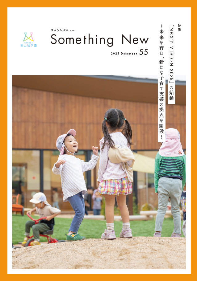 南山城学園は、広報誌『Something New vol.55』を発行しました。今号の特集は、創立60周年を迎えた節目に始動した未来への指針「NEXT VISION 2035」と、その第一歩となる新たな子育て支援拠点の開設についてです。